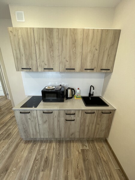 - Оборудование: гладильная доска, микроволновая печь, набор посуды, плита электрическая, сплит-система, стиральная машина, сушилка для белья, телевизор ЖК, утюг, холодильник, чайный набор посуды, электрочайник