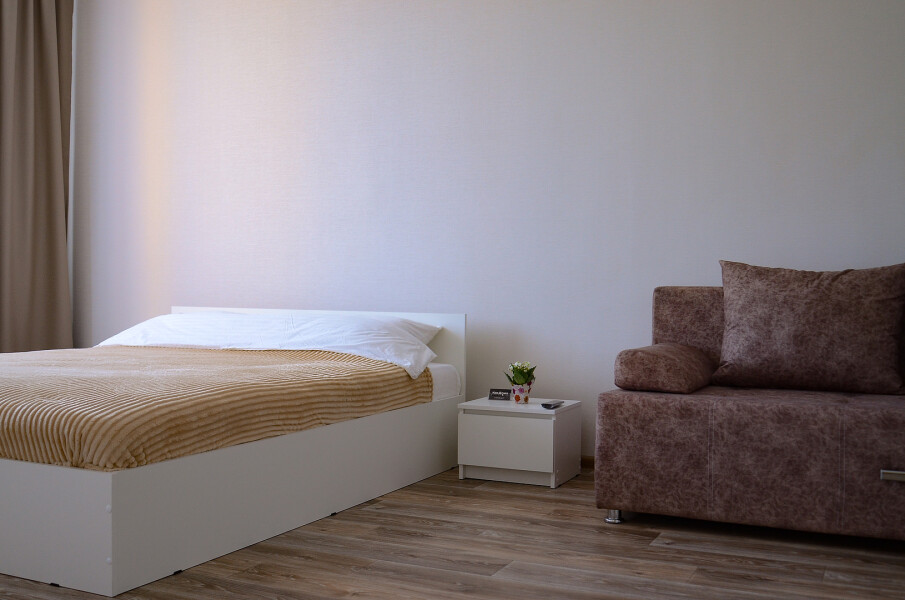 | Апартаменты 4-местный, 2-спальная кровать, 2-спальный диван | 40 кв.м. | 4 чел. | Балкон (с сушилкой), Кухня, Мебель (вешалка, диван раскладной, зеркало, кровать двуспальная, кухонна... |
